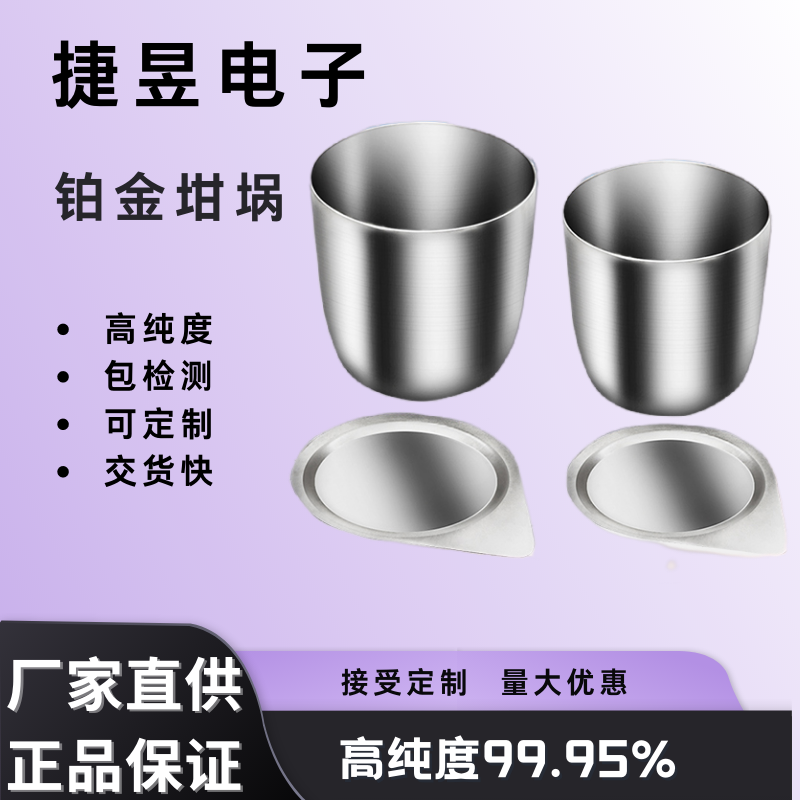 捷昱电子牌的铂金坩埚高纯度PT99.99白金带盖耐高温防腐蚀高校科研实验用产品:估价:200.00,规格:请电话咨询,产品系列编号:请电话咨询 发布日期:2023-9-23